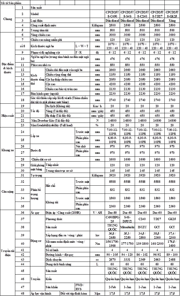 Hình ảnh: Thông số kỷ thuật xe nâng 2,5 tấn
