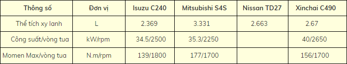 • Nhật Bản:Isuzu C240, Mitsubishi S4S, Nissan TD27